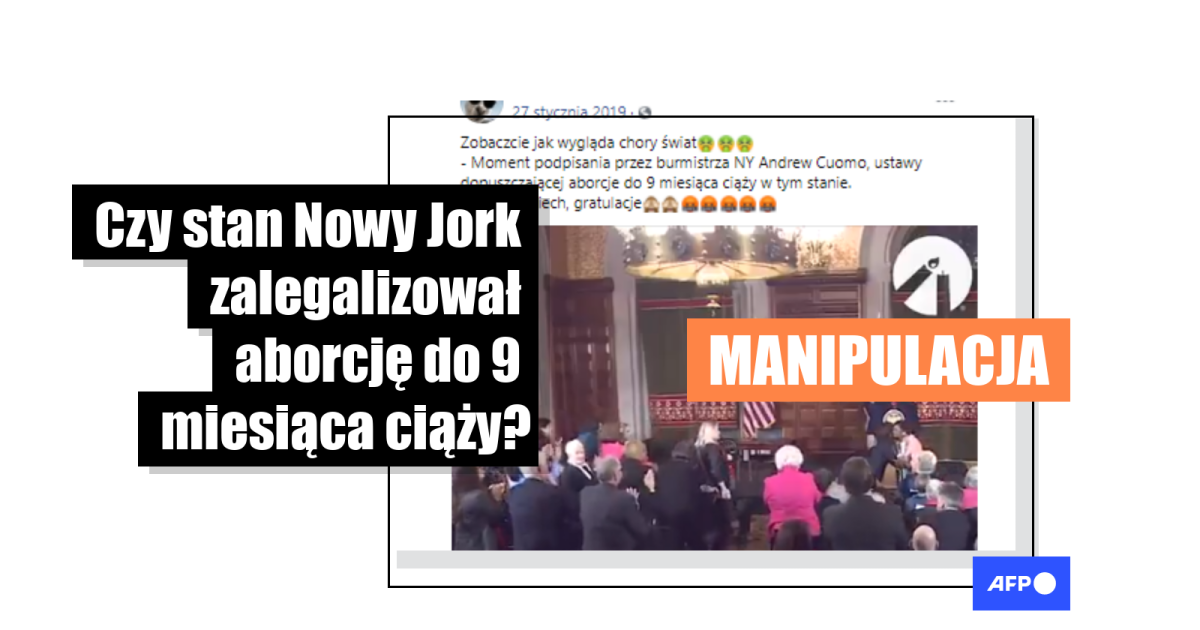Treść posta jest nieprawdziwa. Wpis sugeruje, że nowe prawo zezwala na aborcję na żądanie w przypadku ciąży na późnym jej etapie, co nie jest prawdą. Prawo zezwala na aborcję w trzecim trymestrze ciąży (7, 8, 9 miesiąc) tylko wtedy, gdy zagrożone jest zdrowie lub życie kobiety, lub gdy płód jest niezdolny do życia. Poza tym, Andrew Cuomo jest gubernatorem stanu Nowy Jork, a nie burmistrzem miasta Nowy Jork. Opublikowane wideo tego błędu jednak nie zawiera