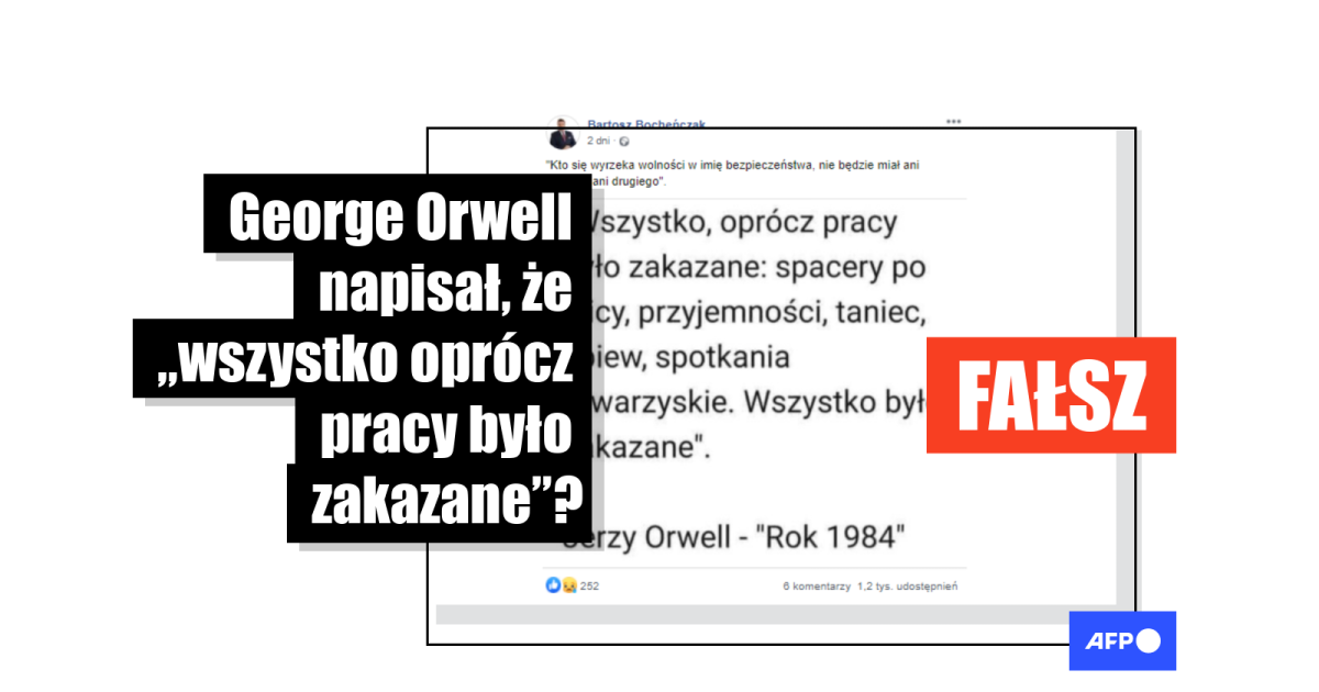 „Wszystko oprócz pracy było zakazane: spacery po ulicy, przyjemności, taniec, śpiew, spotkania towarzyskie. Wszystko było zakazane” – czytamy w grafice udostępnianej na Facebooku. Post został opublikowany 23 listopada (1, 2, 3) przez byłego kandydata na posła w 2019 r. z komitetu wyborczego Konfederacja Wolność i Niepodległość. Miał ponad 1,2 tys. udostępnień i prawie 500 tys. wyświetleń. Cytat był również popularny na Twitterze (1, 2)