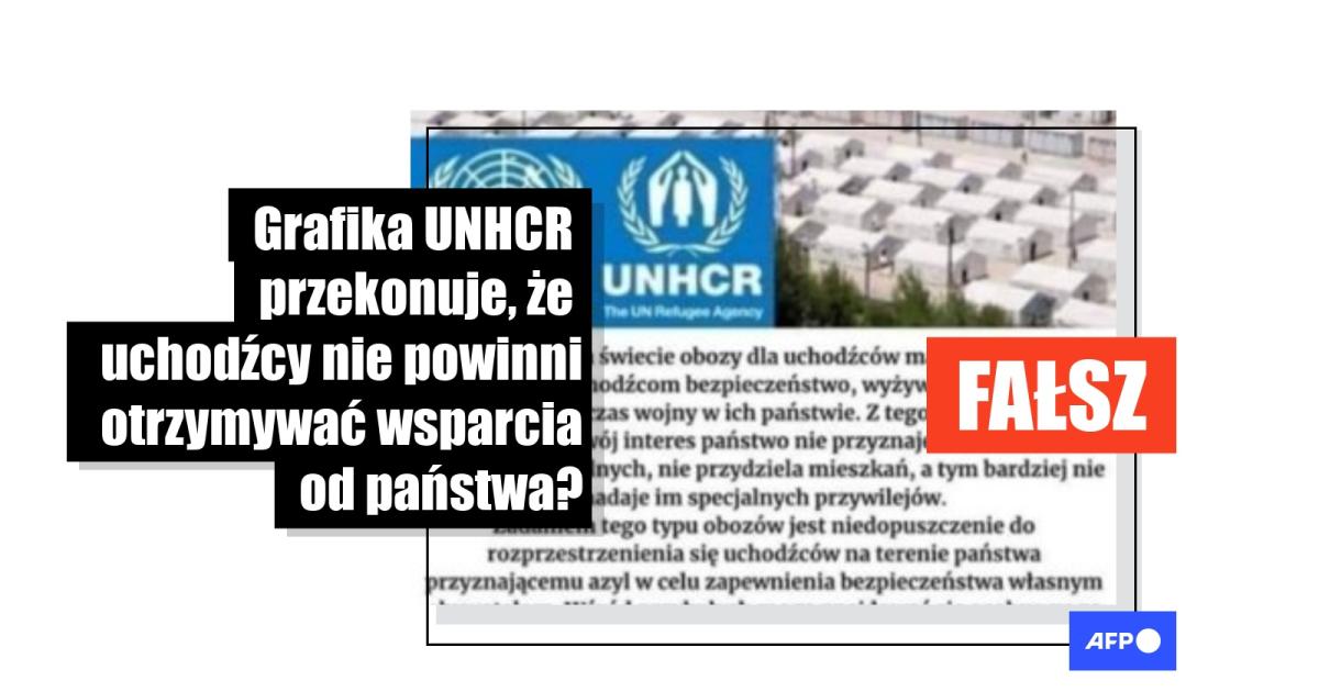 Grafika krytykująca wsparcie dla uchodźców ze strony państwa nie jest autorstwa UNHCR