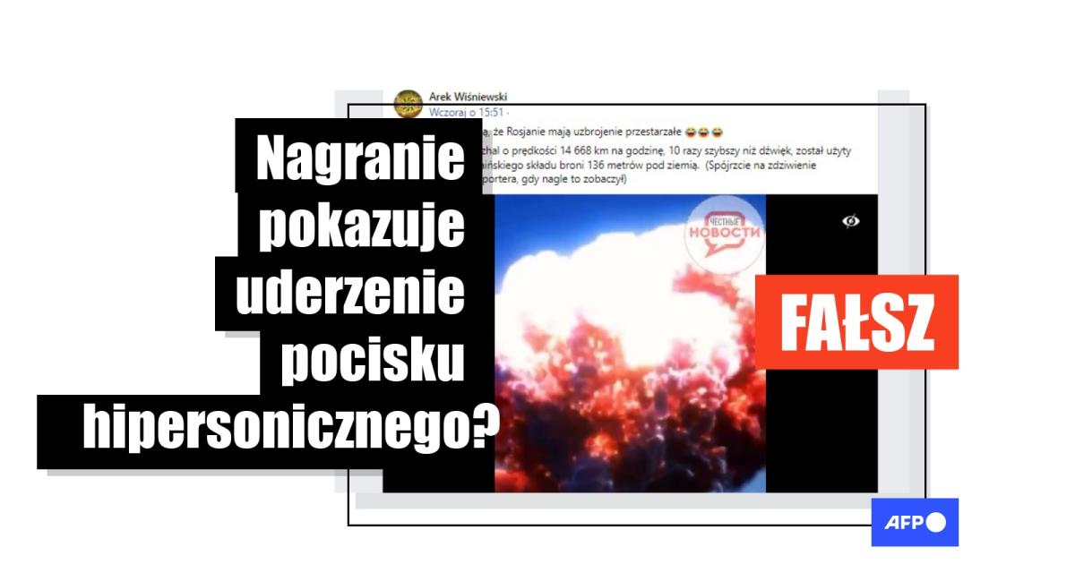 „Rosyjski pocisk Kinzhal o prędkości 14 668 km na godzinę, 10 razy szybszy niż dźwięk, został użyty do zniszczenia ukraińskiego składu broni 136 metrów pod ziemią. (Spójrzcie na zdziwienie amerykańskiego reportera, gdy nagle to zobaczył)” – czytamy w publikacji udostępnionej 21 czerwca 2022 roku. Film był także udostępniany na Twitterze.