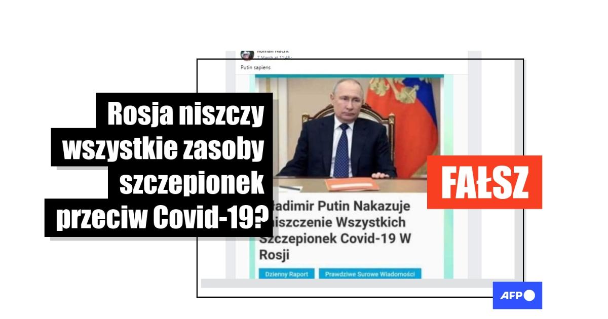 „Władimir Putin nakazuje zniszczenie wszystkich szczepionek Covid-19 w Rosji” – czytamy w publikacji udostępnionej 5 marca 2023 roku na Facebooku. Publikacja zawiera zrzut ekranu z artykułem oraz zdjęcie prezydenta Rosji, który także było udostępniane na Twitterze i Telegramie – na tej ostatniej platformie publikacja zyskała ponad 6,7 tys. wyświetleń. Treści te udostępniali także anglojęzyczni użytkownicy mediów społecznościowych, w tym amerykański użytkownik Twittera, który stwierdził, że to „wspaniała wiadomość”, i którego śledzi ponad 36 tys. osób.