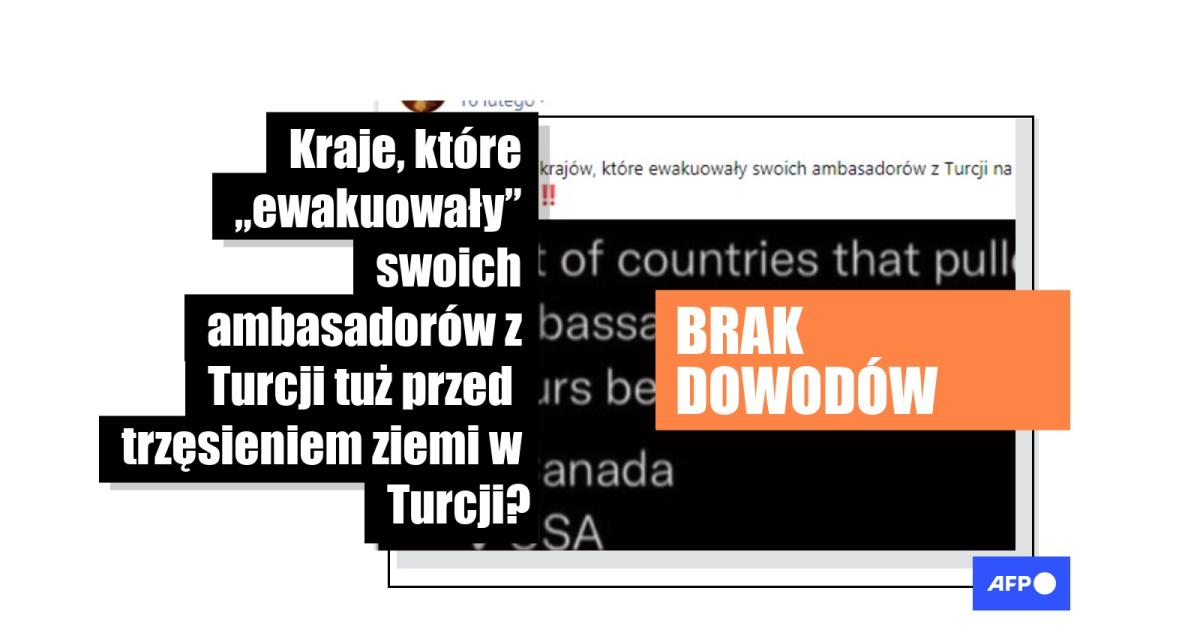 „Oto lista krajów, które ewakuowały swoich ambasadorów z Turcji na 24 godziny przed trzęsieniem ziemi. Dziwne to, nieprawdaż” – czytamy w publikacji na Facebooku z 16 lutego 2023 roku. Do posta dołączony jest zrzut ekranu z tweeta w języku angielskim, który informuje, że kraje zachodnie, takie jak Kanada, Stany Zjednoczone, Wielka Brytania, Niemcy, Belgia, Włochy, Holandia i Francja, wycofały swoich ambasadorów z Turcji tuż przed trzęsieniem ziemi, które dotknęło południowo-wschodnią Turcję i północną Syrię 6 lutego. Publikacja tej samej treści na Telegramie zyskała ponad 14 tys. wejść.