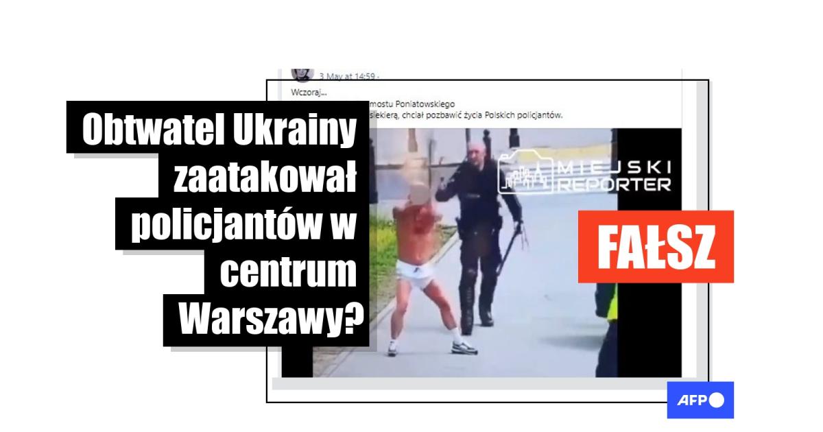 „Wczoraj, Warszawa, okolice Mostu Poniatowskiego. Szalejący Ukrainiec z siekierą chciał pozbawić życia polskich policjantów” – czytamy w publikacji, która miała 65 udostępnień na Facebooku od 3 maja 2023 roku. Publikacji towarzyszy nagranie pokazujące półnagiego mężczyznę wymachującego siekierą na ulicy.
