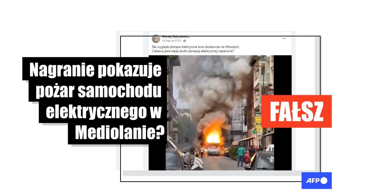 „Tak wygląda płonące elektryczne auto dostawcze we Włoszech” czytamy w publikacji udostępnionej na Facebooku, która miała ponad 2,7 tys. udostępnień od 19 maja 2023 roku, i do której dołączono nagranie płonącego samochodu na ulicach miasta.