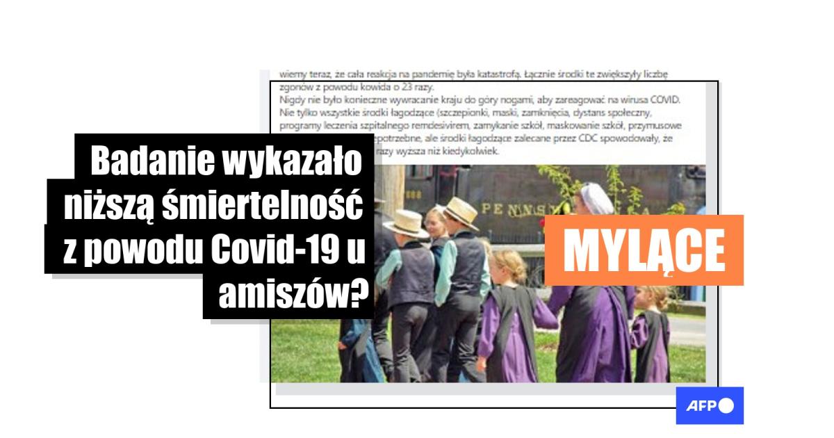 Według publikacji na Facebooku udostępnionej 29 maja 2023 roku amisze „umierali 23 razy rzadziej”, bo się nie szczepili, nie nosili maseczek, nie przestrzegali dystansu społecznego, nie stosowali się do blokad i zachodniej opieki medycznej w leczeniu choroby Covid-19. W treści posta udostępnianego ponad 50 razy od końca maja 2023 roku można również przeczytać, że „cała reakcja na pandemię była katastrofą”, że była „niepotrzebna” i spowodowała więcej zgonów.