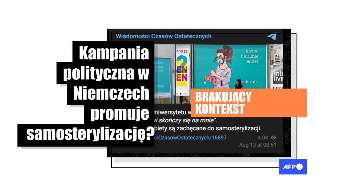 „Billboard Uniwersytetu w Greifswaldzie: «Moja linia krwi skończy się na mnie». Niemieckie kobiety są zachęcane do samosterylizacji” – czytamy w publikacji udostępnionej na Telegramie 13 sierpnia 2023 roku, która miała 4 tys. wyświetleń. Podobne posty były udostępniane na platformie X (kiedyś Twitter) oraz na Facebooku. Tego typu treści z przesłaniem „kampania aborcyjna na Uniwersytecie w Greifswaldzie” były udostępniane także wśród niemieckojęzycznych użytkowników w lipcu 2022 roku.