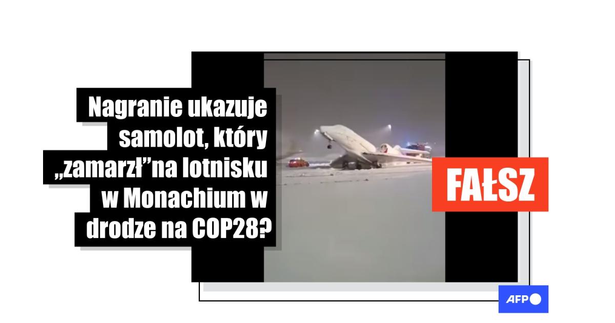 „To znak! Samolot, który miał lecieć na szczyt globalnego ocieplenia w Dubaju, zamarzł na pasie startowym lotniska w Monachium” – czytamy w opisie do filmu, który został udostępniony na Telegramie 2 grudnia 2023 roku. „Śnieżyca uniemożliwiła wylot samolotu, który miał lecieć do Dubaju z Monachium na szczyt tak zwanego Globalnego Ocieplenia organizowany przez największych pasożytów na naszej planecie” – czytamy w publikacji z tym samym nagraniem na Facebooku, która miała ponad sto udostępnień.