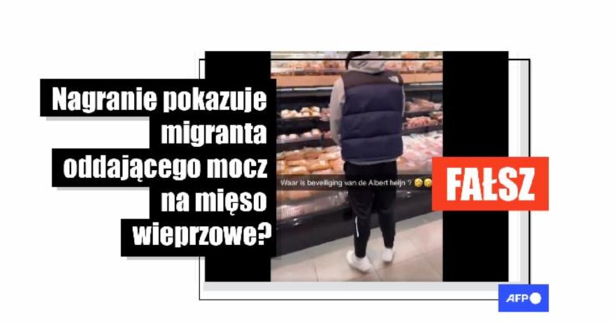 Jednakże film udostęponiany w postach przedstawia zainscenizowaną scenę. Twórca filmu wyjaśnił redakcji fact-checkingowej AFP w Holandii, że widoczny w nagraniu mężczyzna nie oddał moczu na produkty z mięsem.