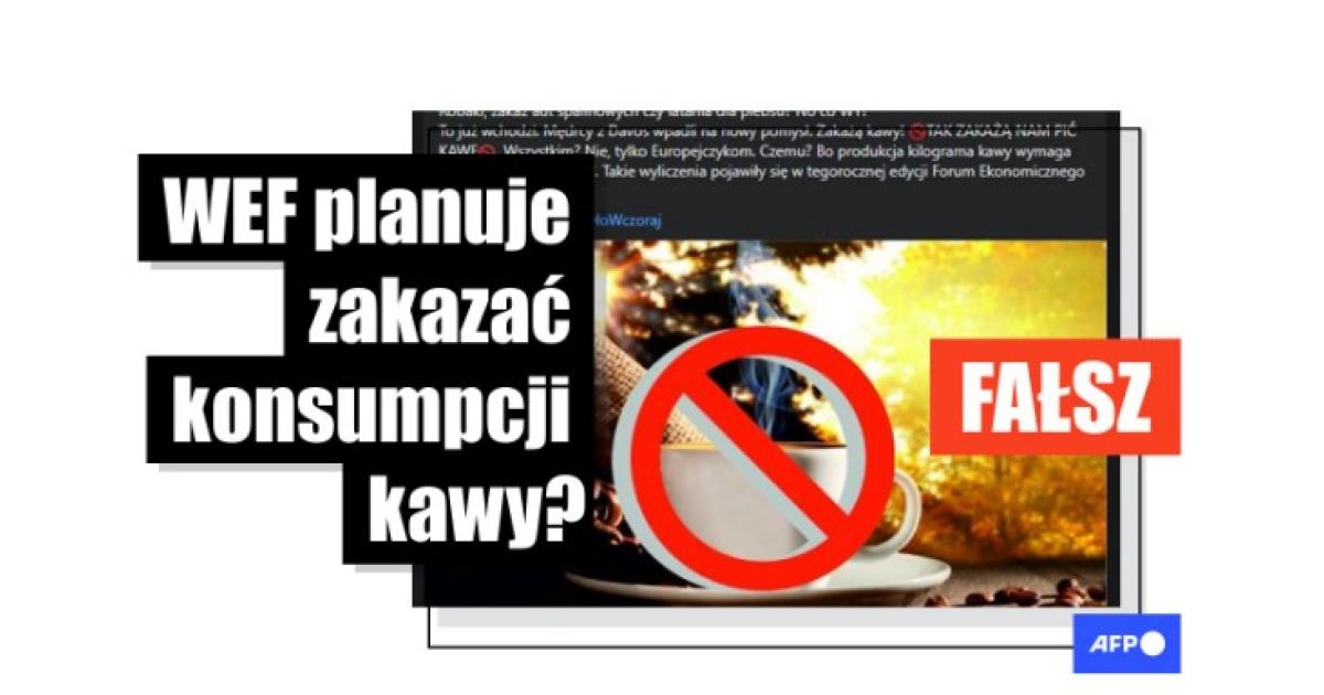 „Mędrcy z Davos wpadli na nowy pomysł. Zakażą kawy!” – czytamy w poście na Facebooku, który od 31 stycznia 2024 roku został udostępniony setki razy. W poście dodano również, że kawa zostanie zakazana, ponieważ „produkcja kilograma kawy wymaga wytworzenia 15 kg CO2. Takie wyliczenia pojawiły się w tegorocznej edycji Forum Ekonomicznego w Davos”.