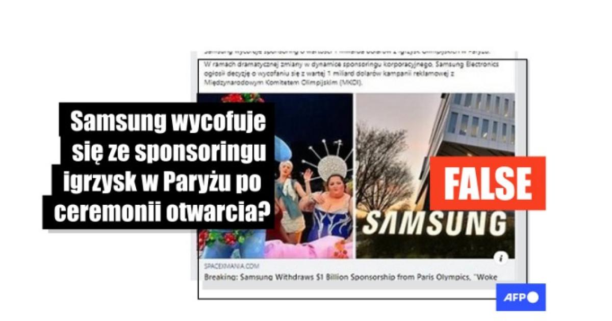 AFP zwróciła się o komentarz do firmy Samsung, która potwierdziła 1 sierpnia 2024 r, że twierdzenie zawarte w postach „jest fałszywe”. „Oczywiście nadal jesteśmy partnerem Paris 2024” – dodała.