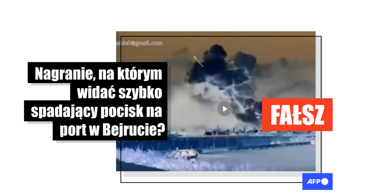 Materiał odsyła do artykułu o tytule: „Bejrut: film nakręcony z kamery laserowej, niestety nie do podważenia”. Na stronie można film zobaczyć w całości. Ma on zaledwie 30 sekund. Nagranie w niebiesko-pomarańczowych barwach pokazuje unoszący się dym oraz spadający bardzo szybko biały pocisk w kierunku portu w Bejrucie. Widać to w trzeciej sekundzie.