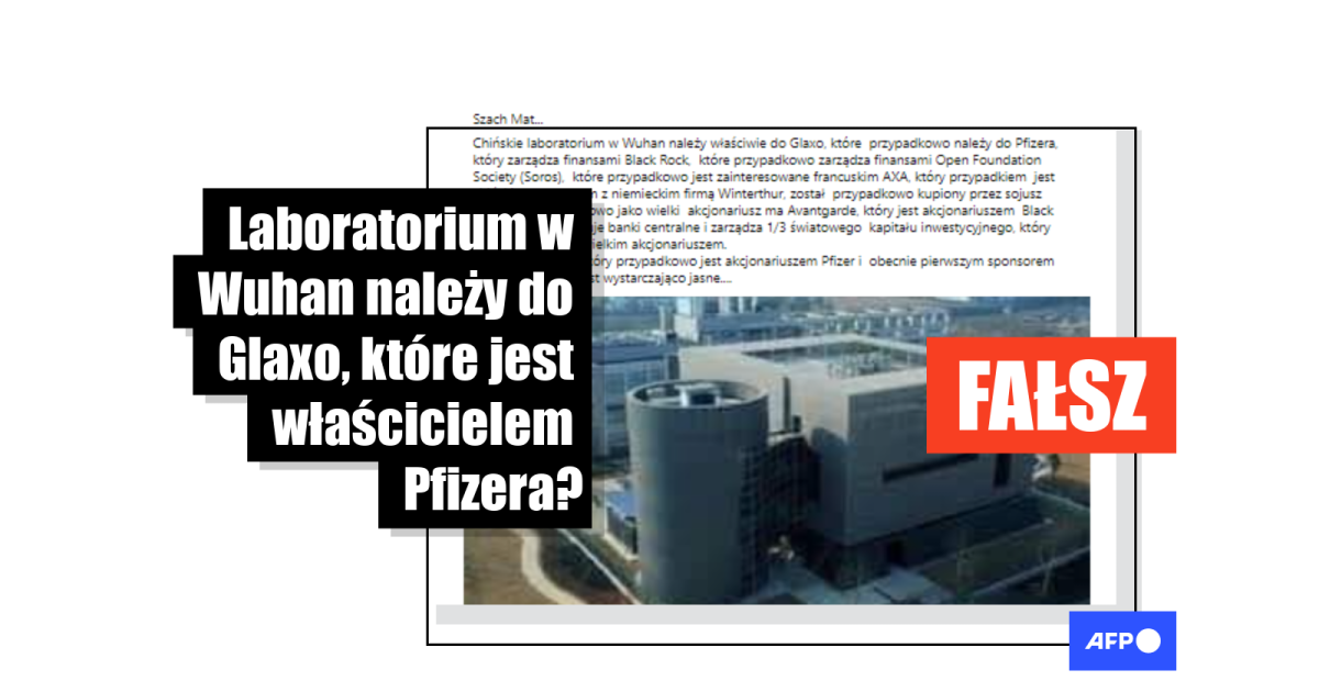 „Chińskie laboratorium w Wuhan należy właściwie do Glaxo, które przypadkowo należy do Pfizera, który zarządza finansami BlackRock, które przypadkowo zarządza finansami Open Foundation Society (Soros) (…)” – czytamy w publikacji udostępnionej na Facebooku (1, 2, 3).