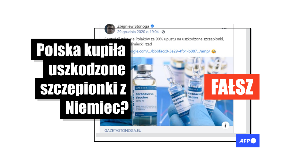 „Polska kupiła źle transportowane szczepionki, które zwróciły Niemcy!!!” - czytamy w tytule. „Przywiezione wczoraj (w poniedziałek 28 grudnia - przyp. red.) w okolice Tomaszowa Mazowieckiego szczepionki na COVID 19 wcześniej zostały zwrócone przez niemiecki rząd do producenta”, czytamy dalej.