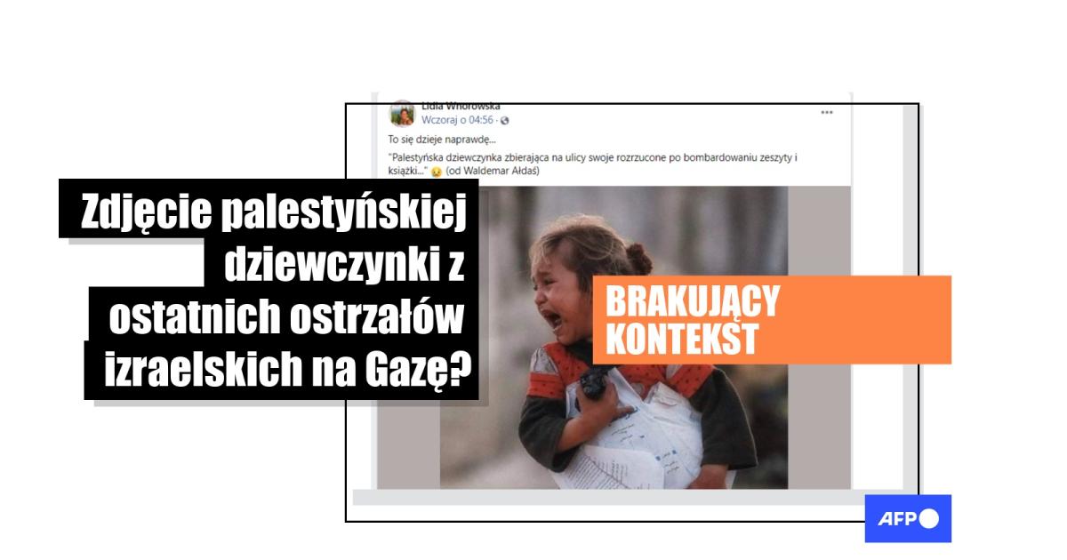 „… się dzieje naprawdę...Palestyńska dziewczynka zbierająca na ulicy swoje rozrzucone po bombardowaniu zeszyty i książki..." - napisała użytkowniczka udostępniając na Facebooku zdjęcie zapłakanej dziewczynki z podartymi podręcznikami szkolnymi.