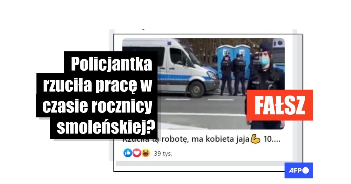 Wniosek: policjantka z warszawskiej prewencji nie zrezygnowała z pracy w czasie obchodów 11 rocznicy smoleńskiej, jak twierdzi autor wpisu dołączonego do filmu. W rzeczywistości nagranie pokazuje bardziej prozaiczną sytuację.