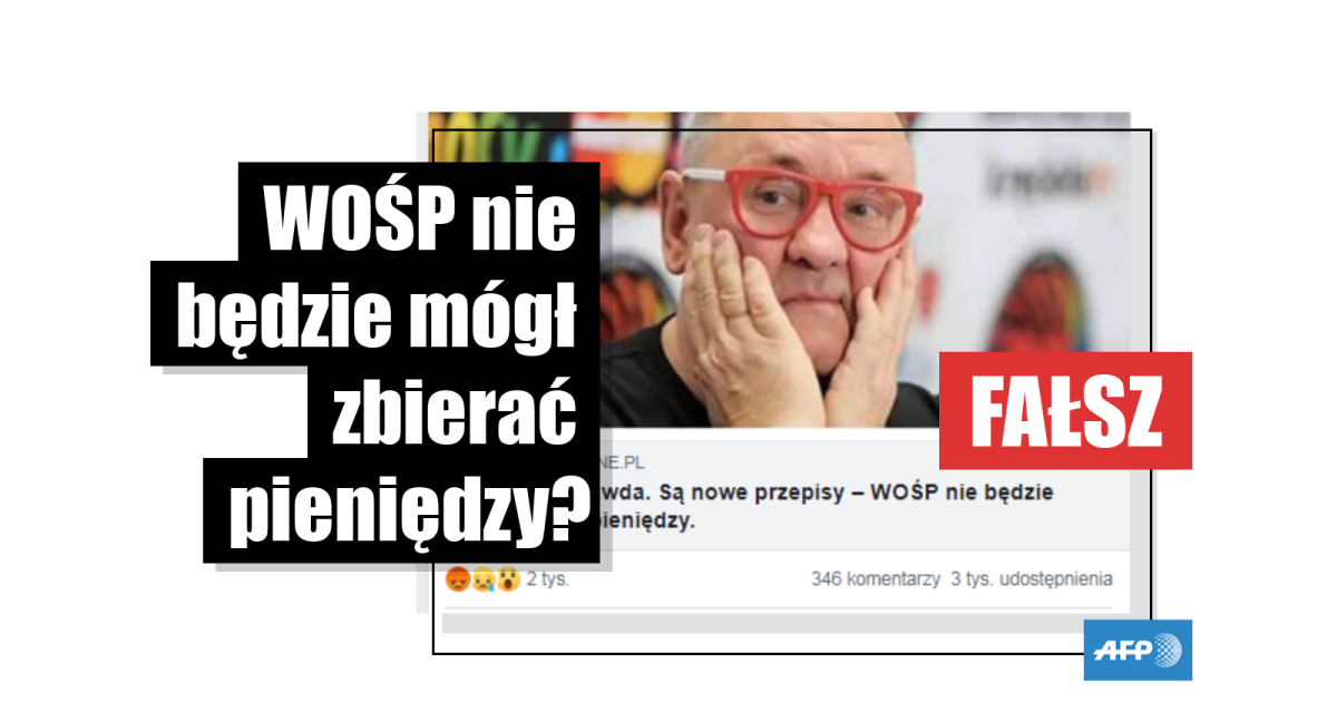 Nie byłoby o niej mowy, gdyby nie to, że podobny artykuł pojawił się pięć dni temu na innej stronie. Jego tytuł brzmi „Niestety to prawda. Są nowe przepisy - możliwe że WOŚP nie będzie mógł zbierać pieniędzy”. Artykuł ten ma ogromny zasięg - na Facebooku udostępniło go 17 tys. użytkowników m.in. aktorka Krystyna Janda.