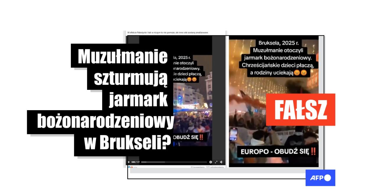 Nagranie pokazuje wiec solidarnościowy z Palestyńczykami w Brukseli, a nie „muzułmanów atakujących jarmark bożonarodzeniowy”