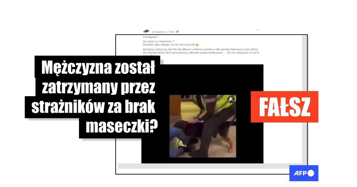 „Do czego my zmierzamy? Podobno tylko dlatego, że nie miał maseczki” – czytamy w treści opublikowanej na Facebooku 20 kwietnia 2021 roku (1, 2). Do publikacji dołączono wideo, na którym widać szamotaninę między trzema mężczyznami. Dwóch w odblaskowych kamizelkach zatrzymuje mężczyznę i powala na ziemię. Towarzyszący im pies gryzie go w nogę, a złapany mężczyzna wyje z bólu.